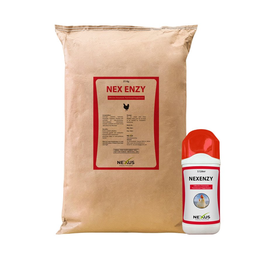 • Each gram of NexEnzy contains – Xylanase, Pectinase, Cellulase, Phytase with supportive activities of beta-glucanase, alpha- galactosidase, beta mannanase, amylase, protease and lipase along with Direct Fed Microbes